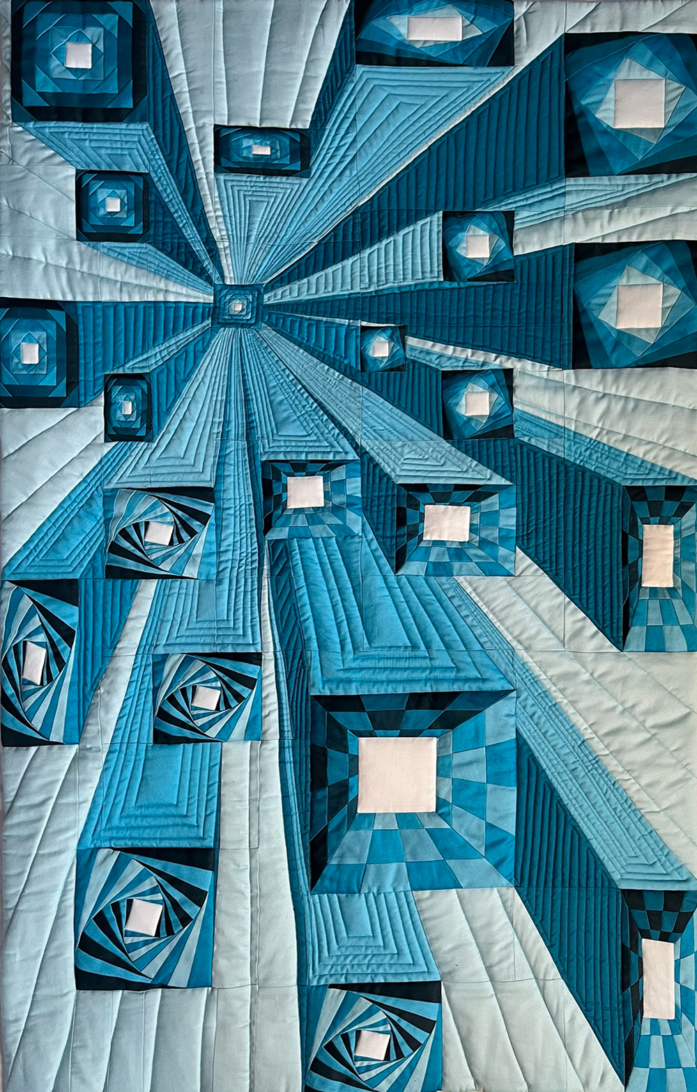 Moderner Quilt mit beeindruckender Tiefenwirkung – im Kurs „Tiefenrausch“ entsteht dein einzigartiges FPP-Projekt.